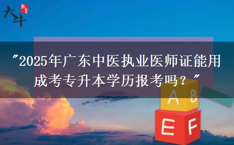 隨著社會的發(fā)展和需求的變化,越來越多的人開始意識到提升學歷的重要性。而在2025年,廣東成考專升本的中醫(yī)執(zhí)業(yè)醫(yī)師證報考條件備受關(guān)注。那么,廣東中醫(yī)執(zhí)業(yè)醫(yī)師證能用成考專升本學歷報考嗎?